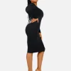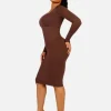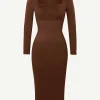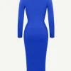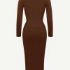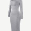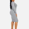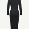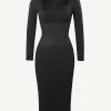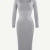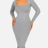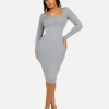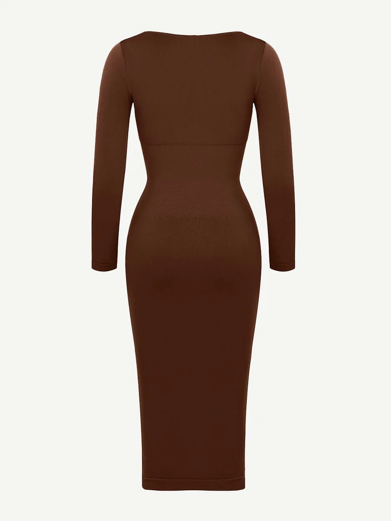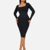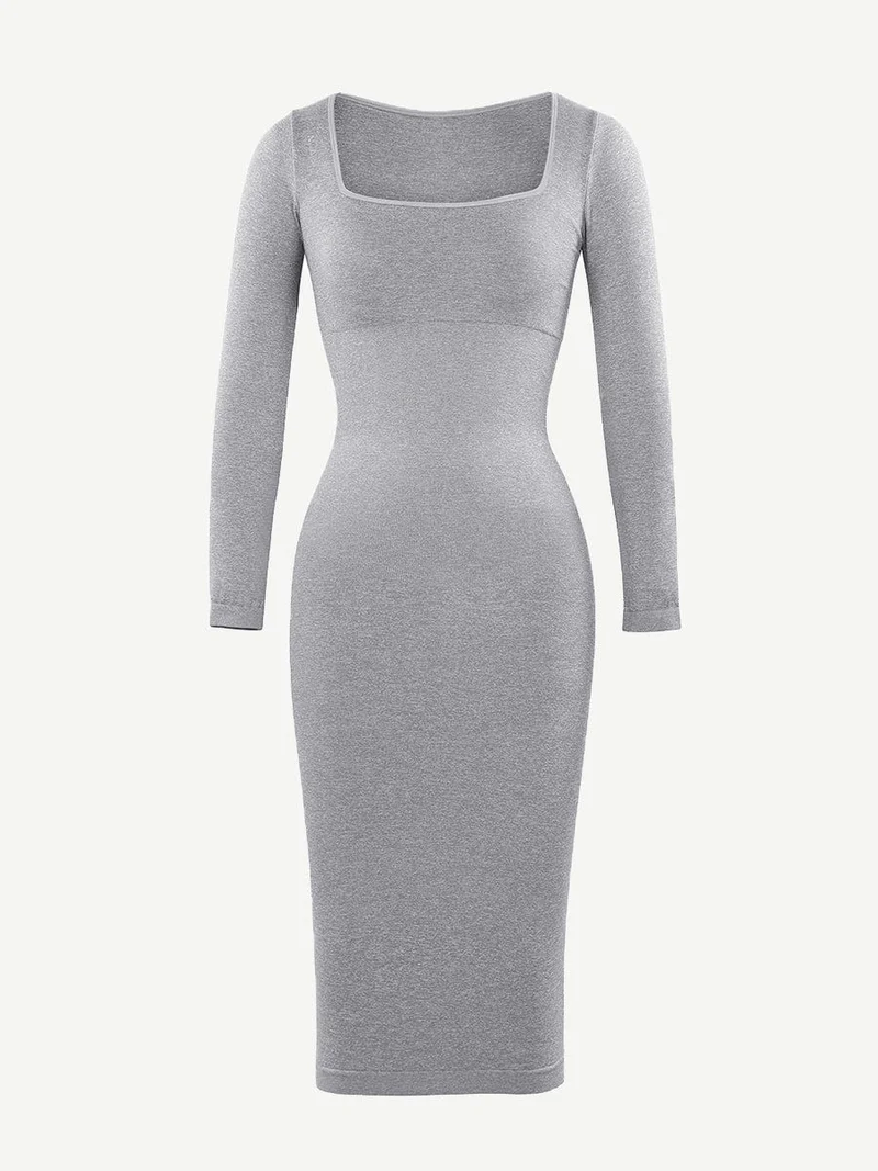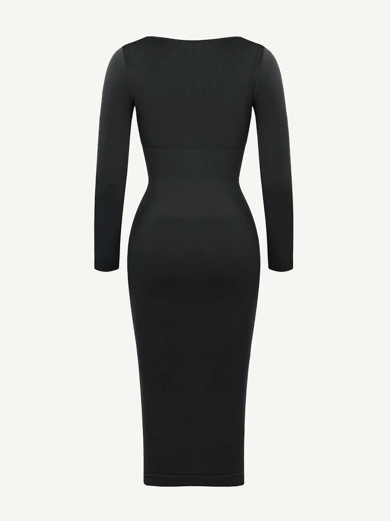 Square Neck Long Sleeves Shapewear Midi Dress