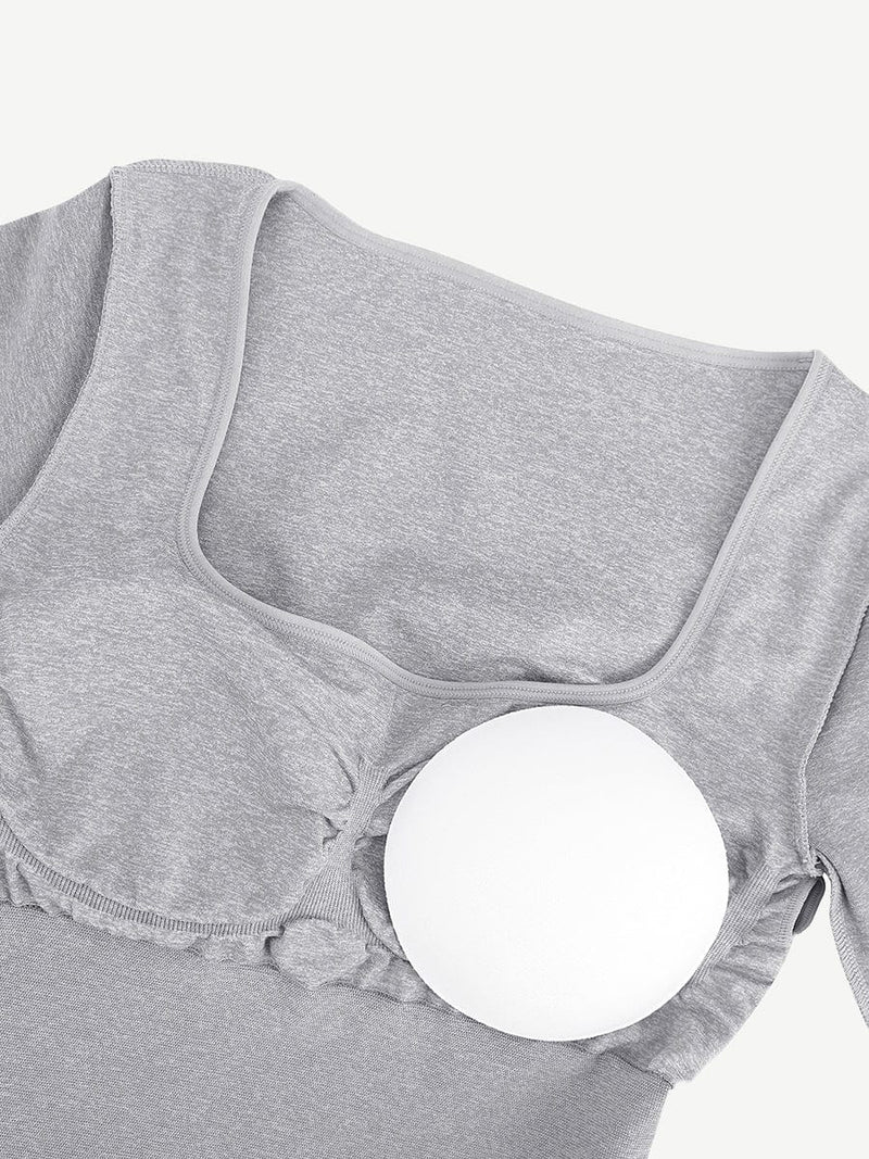 Feature: 1. Built-in removable bra pads for bra-free style. 2. Tightly woven fabric in the waist and lower abdomen panels provides increased support and comfortable compression. 3. The woven support fabric on the inner side of the chest panel provides slight support to your breasts. 4.  Seamless contouring style. 5.  Comfy fabric for all-day wearing. 6. Versatile mix & match for your basic and retro style. 7.  Retro square neck style visually elongates your neck curve, highlighting the beauty of women’s collarbones. 8. Elastic compression fabric with a 360° waist and abdominal control.Material: 55%Recycled Nylon+36%Nylon+9%Spandex